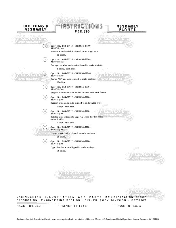 The book covers cars from the firewall back; the hood and front fenders are not covered (because these were assembled at the chassis assembly plant and not the Fisher body plant). Please see the table of contents image. All pages are watermarked with a background image like the sample page. Buy now to own this hard-to-find manual.
