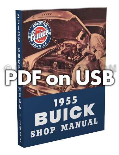 This USB offers the complete 430-page "1955 Buick Chassis Service Manual." The service manual is a page-for-page reproduction of the bound manual that Buick mechanics used to repair cars. You will find detailed service procedures for lubrication & bearing service, the engine, fuel & exhaust systems, clutch, s-m transmission, universal joint, Dynaflow transmission, rear axle assembly, chassis suspension, steering gear & linkage, brakes, electrical systems, radio, heater, A/C, frame, sheet metal, and more. With the step-by-step instructions, schematics, specifications, special tool lists and wiring diagrams in this manual, you will have the information you need to get your project on the road and keep it there. The best part is that you can print out the pages you need, dirty them in the shop, and then throw them away. Great if you have a hard copy that you want to keep clean. Buy now to own the best book for your car on USB.