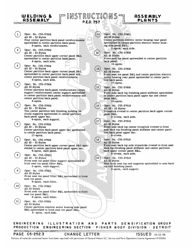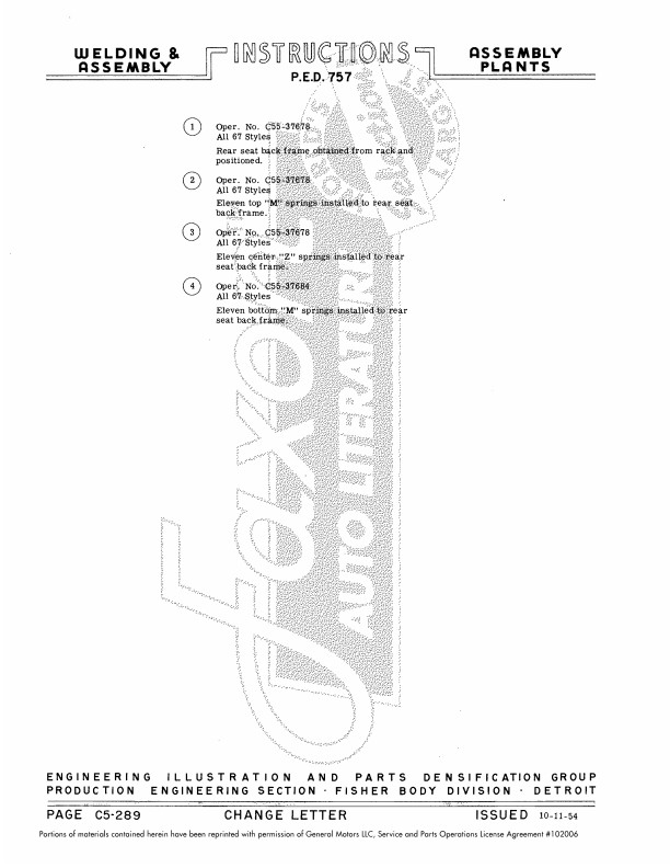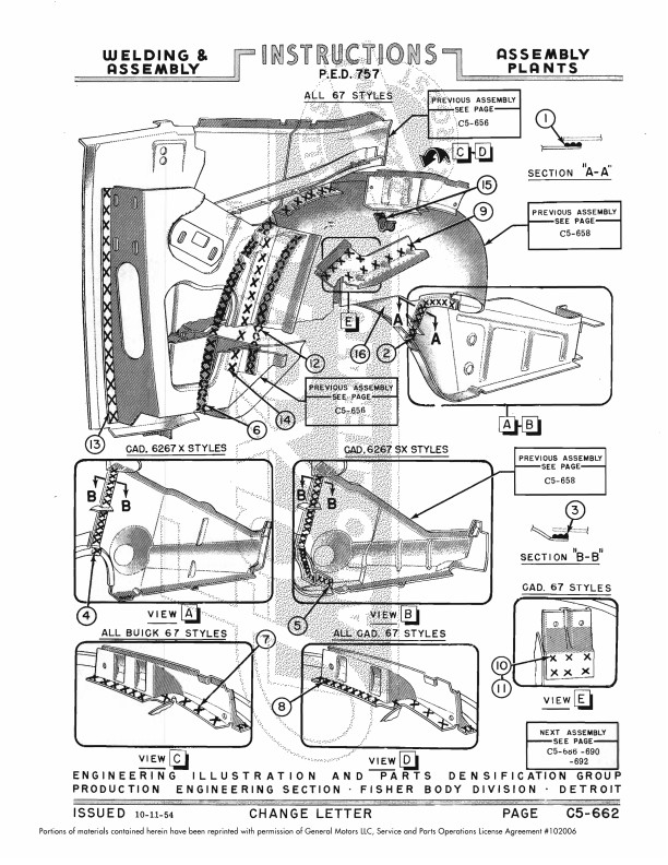 This assembly manual is unlike anything you've ever seen. This Fisher body plant assembly manual shows how metal body parts are welded together - it shows the location of hundreds of welds. It’s helpful for hidden welds holding up parts you might need to remove and replace. If you’re replacing parts due to rust, you’ll find out how to replace mounting parts that have rusted away. The book is particularly useful if the car has had damage from a wreck. You learn the specific type of weld (stitch, gas, seam, etc.) that was originally used in each location.