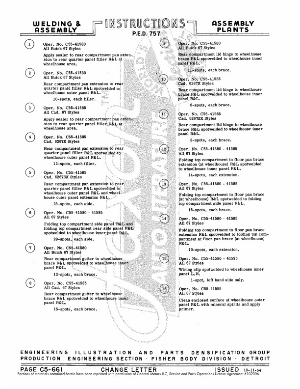 "Welding Assembly Manual Instructions Specifications 1955 All Cadillac Buick Super Roadmaster Assembly Plants"