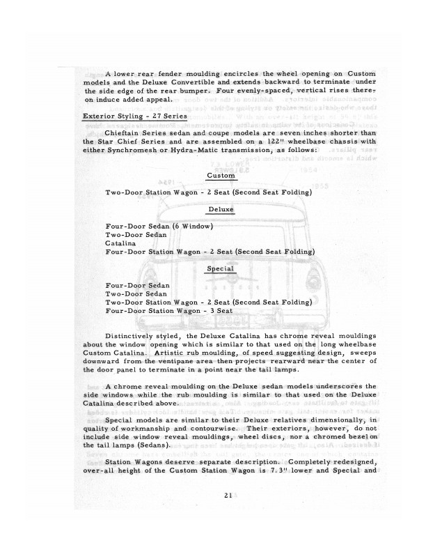 This is a reprint of the confidential manual written by the Pontiac Engineering staff to train salespeople on the features of the new models. It begins "Pontiac for 1955 will be remembered in this Division's history as being the most outstanding, radically changed model introduced since its inception." This book describes mechanical and/or styling improvements of vehicles by explaining in detail how vehicles changed from the previous year. You will find detailed mechanical Mechanical drawings, interior/exterior photos & dimensions, and optional equipment/accessories, lists of interior-exterior paint combos. .