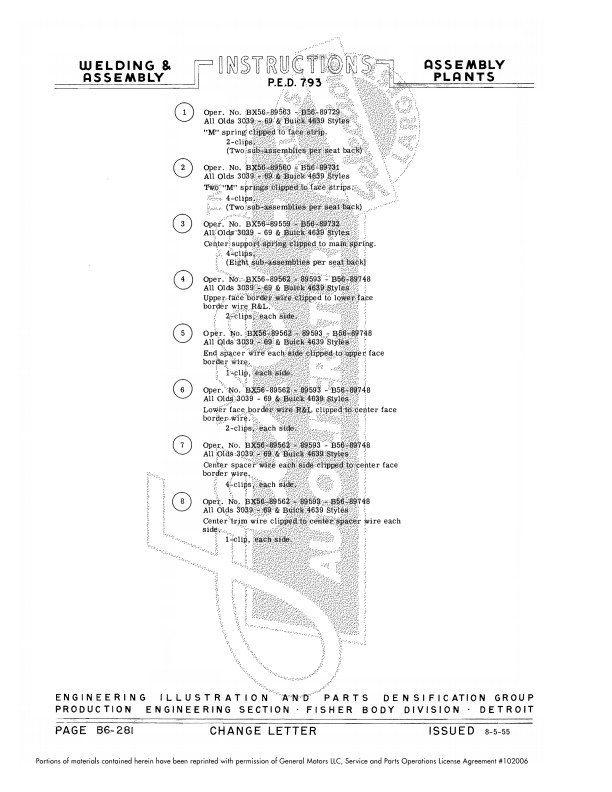 The book covers cars from the firewall back; the hood and front fenders are not covered (because these were assembled at the chassis assembly plant and not the Fisher body plant). Please see the sample page image. All pages are watermarked with a background image like the sample page. Buy now to own this hard-to-find manual.