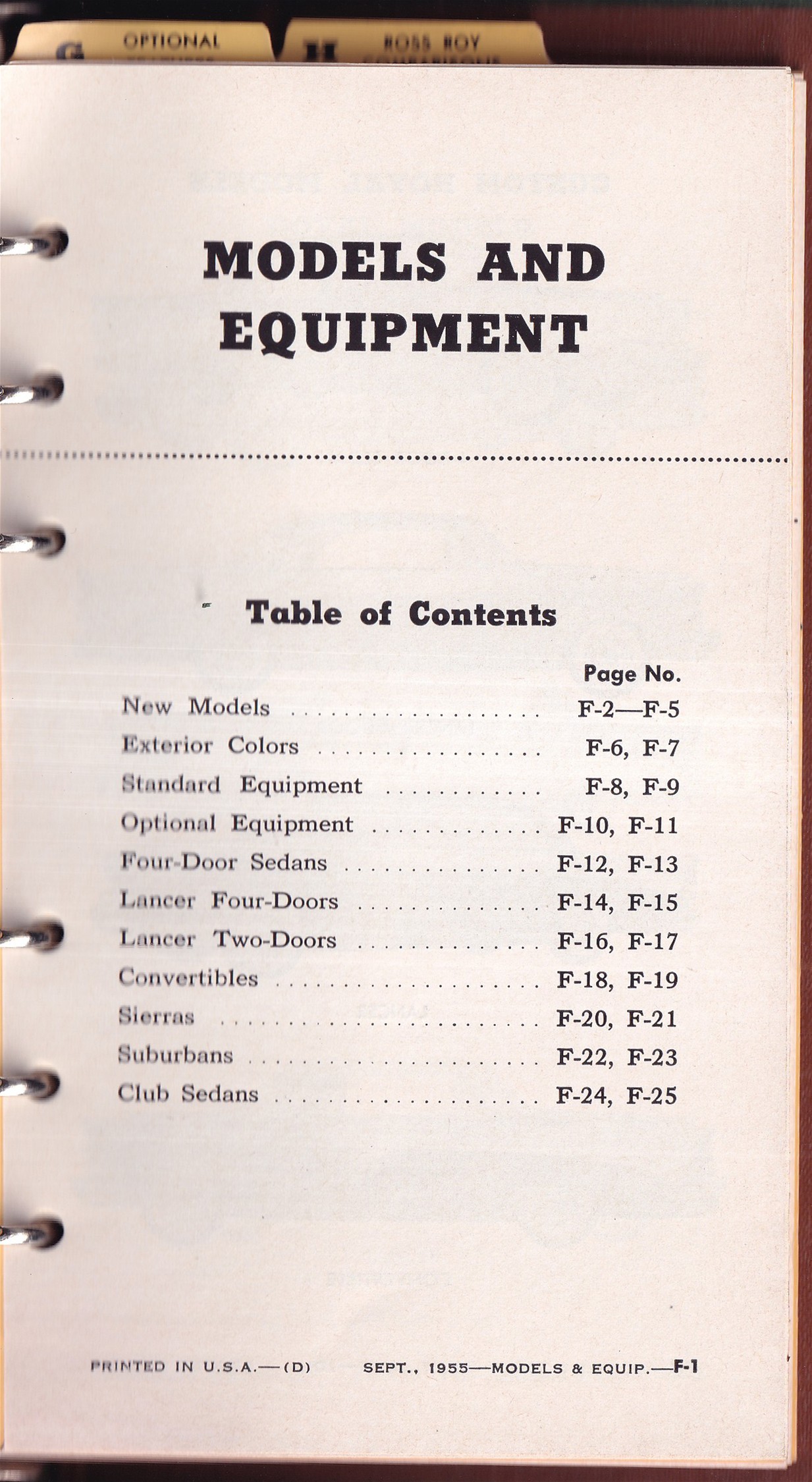 This is a dealer-only album that salespeople used. You can use this book to restore your vehicle to its historic best, upgrade with factory options, or to authenticate equipment already installed. You will find the following information in this book: