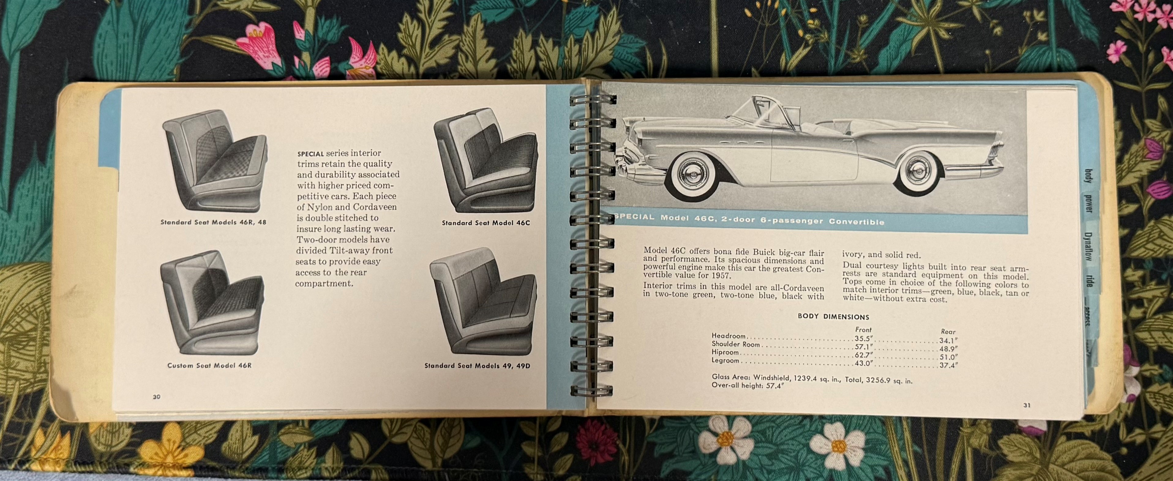 Data or Facts -- the most detailed information on standard and optional equipment, specifications, dimensions, accessories, and trim packages. You will find out the dealer's "inside information" that is far more detailed than a sales brochure. You'll find detailed descriptions of interior and exterior styling as well as mechanical and safety features with explanations of how the car changed for 1957. Includes 19 pages of pictures and descriptions of accessories. Buy now to be one of the few collectors to own this privileged information.