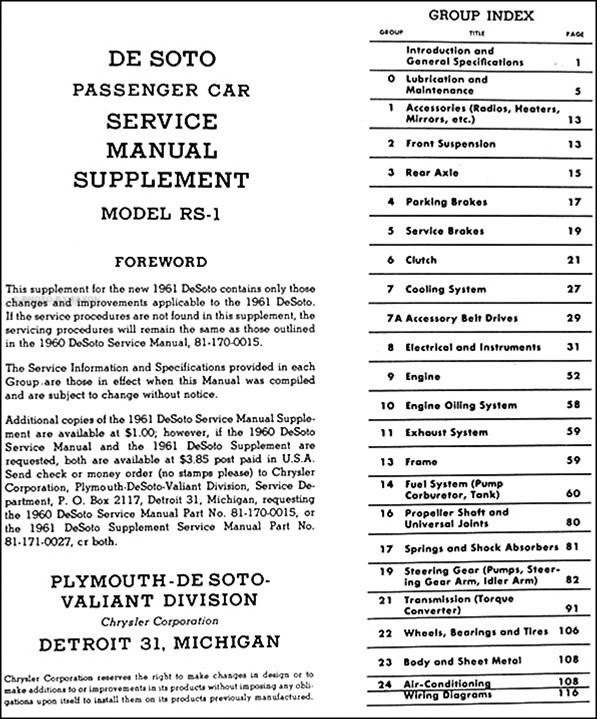 - the 122 page "1961 De Soto Service Manual Supplement."