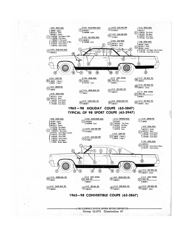 This is the book that dealership parts & service departments used to order body parts. The illustrations in the book will help you to identify parts, and the exploded views can aid you with the assembly or disassembly of some parts of the bosy. The text is a list of the parts available at the time of publication with data such as part numbers, model-year application and/or component application, part names, and more. This book includes a numerical index, so if you have a part number you can locate the part in the book.