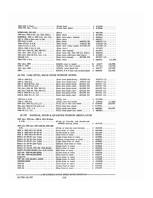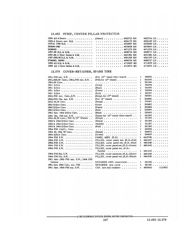 You will find original parts numbers, which are still useful today because most parts vendors still use those numbers to keep track of their own stock. You can also use this parts book to find out which parts on your vehicle interchange with other years and models covered in this book. Parts books are the authority on the correct equipment for your vehicle; you'll know definitively which parts and accessories are original when you use this book.