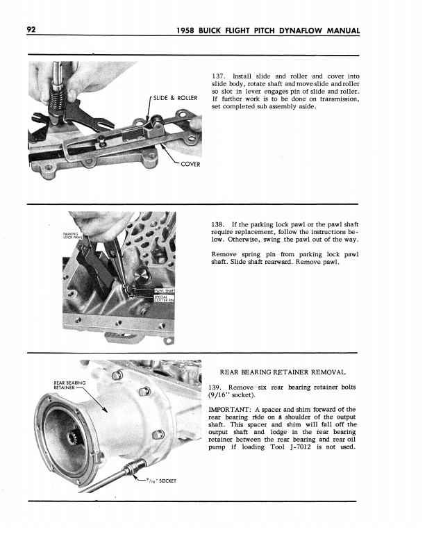 This is a reprint of the original manual that a Buick dealer mechanic would use to service transmissions. This manual is divided into two sections. In the first section, you will find step-by-step instructions to service the transmission. The second section gives you illustrated step-by-step instructions on the disassembly, inspection, and reassembly of the Flight Pitch Dynaflow. Also, lots of clear black and white pictures, color-coded illustrations, and specifications clarify the instructions. This manual contains only transmission information. It will refer you back to the 1958 Buick Shop Manual for repairs of other parts. Buy now to own the best manual for your transmission.