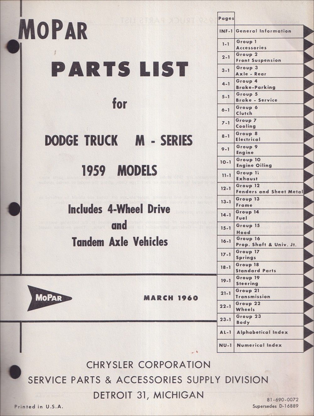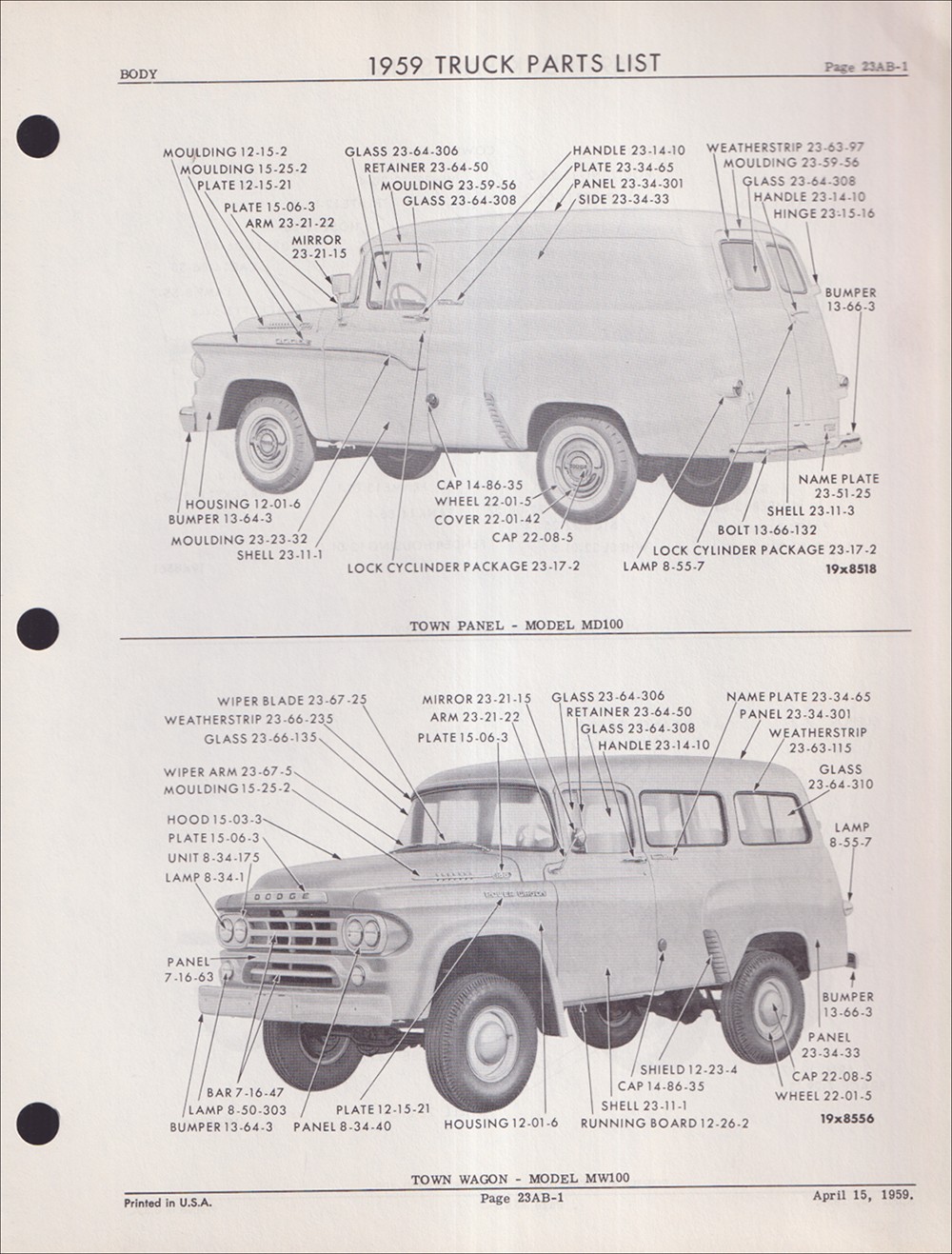 "MoPar Dodge Truck Parts List 1959"