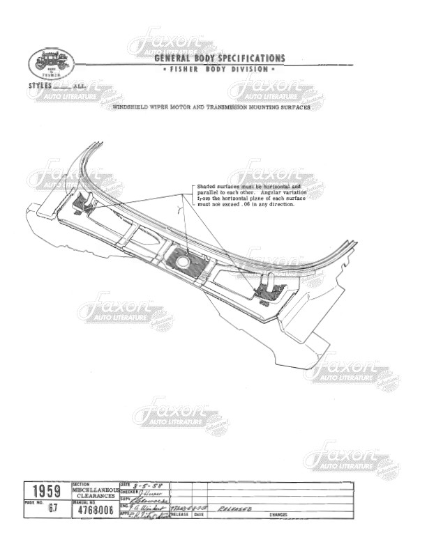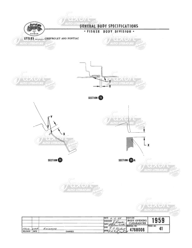 This assembly manual was written by GM engineers for use in the Fisher Body assembly plant. It gives you specifications for clearances, operating effort, leak testing, and torque.