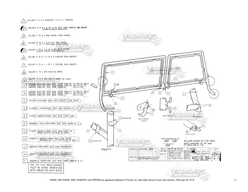 - Plugs, Gaskets, and Rubber Parts: You get part numbers for rubber parts to install body parts. See illustrations of exact locations and instructions for applying rubber parts and gaskets to hood, antenna, dash, underbody plugs, quarter panel, trunk, a d convertible top well and header.