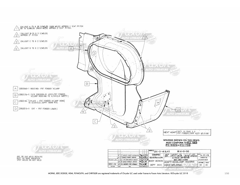 - Anti-corrosion: Shows areas to be primed and sealed.