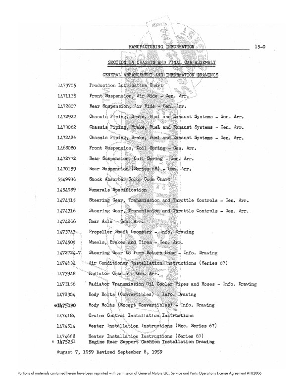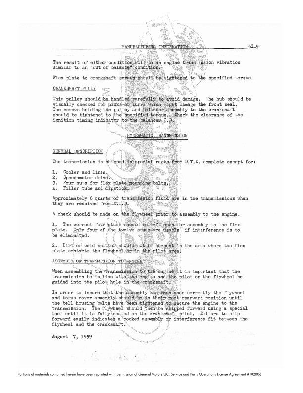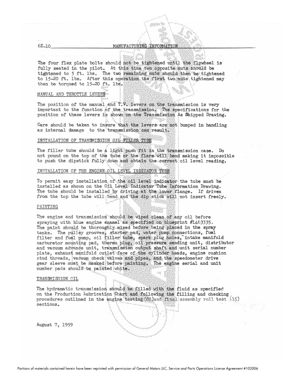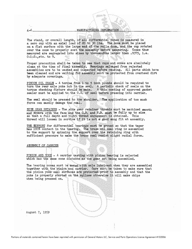You’ll see plenty of specifications, such as wheelbase for each body style, engine serial numbers, Hydramatic shift points, standing height, plus more than 5 pages of torque specifications. The book occasionally references drawings or specs which are in other books. Each page is watermarked, please see the sample page. Buy now to own this hard-to-find book.