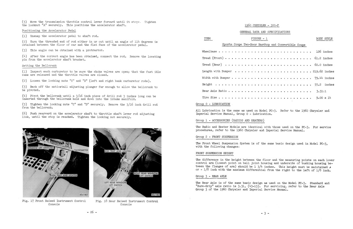 "Data and Specifications: Chrysler all 1960 C300-F Models"