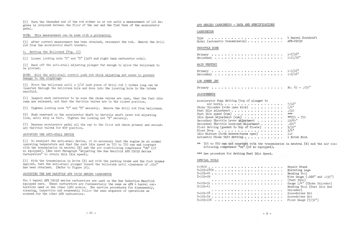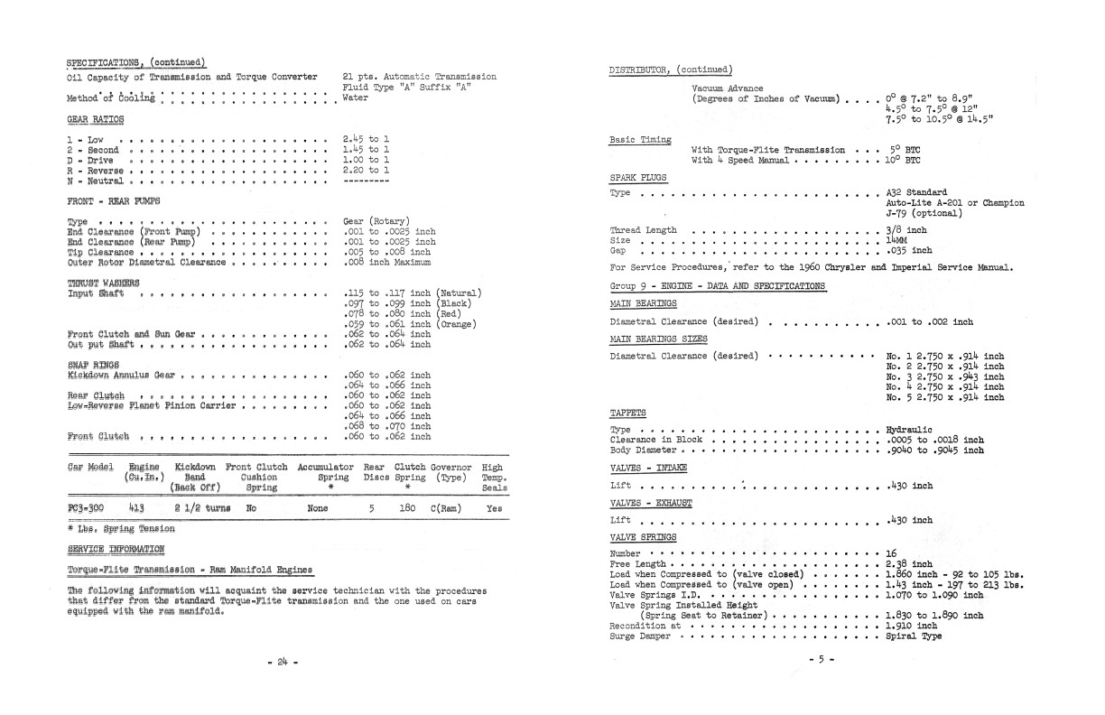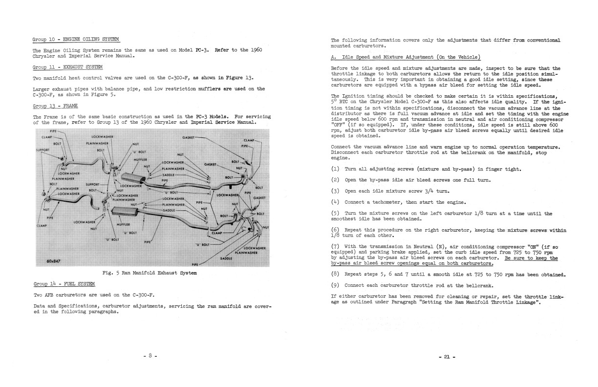 This is a page-for-page reproduction of the manual that Chrysler mechanics used to service your car. It shows you how to repair 300F-specific parts, such as dual four-barrel carburetors, engine, camshaft, intake manifold, air cleaners, heavy duty valve springs and dampers, and more. This supplement shows you those features of the letter car that differ from the standard Chrysler. For repairs that are the same, this book will refer you to the 1960 Chrysler manual. With step-by-step instructions, clear pictures, and specifications, you will have the information you need to get your project on the road and keep it there. This book covers 1960 Chrysler 300F only. It measures 8.5" x 11", has 28 pages, and is in new condition. Buy now to own the best manual for your car.