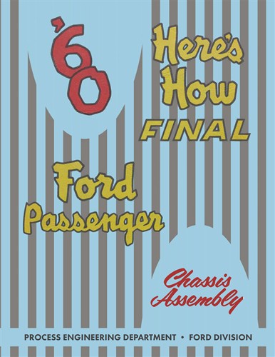 This book was created to train assembly plant staff to assemble the chassis of the 1960 Ford. This is a worded instruction book rather than exploded numbered parts diagrams that you might have seen in other assembly manuals. It is a written overview explaining the assembly process. Each page addresses a chassis component showing: