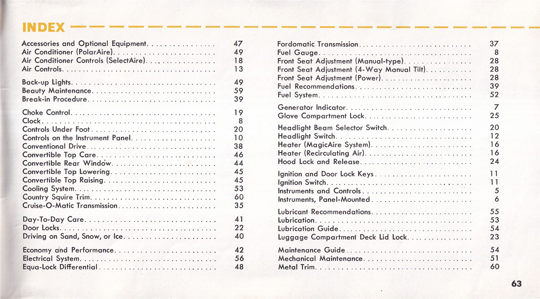 This is an original manual that was issued with 1960 Fords. You will find step-by-step instructions for operation and service of controls and instruments such as the air-flow damper controls, battery, brakes, choke, convertible top, cooling system, locks, Fordomatic, fuses, heater, ignition switch, and a maintenance guide. The book has 64 pages of illustrations and step-by-step procedures. Covers 1960 Ford Galaxie, Starliner, Sunliner convertible, station wagons, Fairlane, Fairlane 500, & Courier sedan delivery. Buy now for the best manual for your Ford.