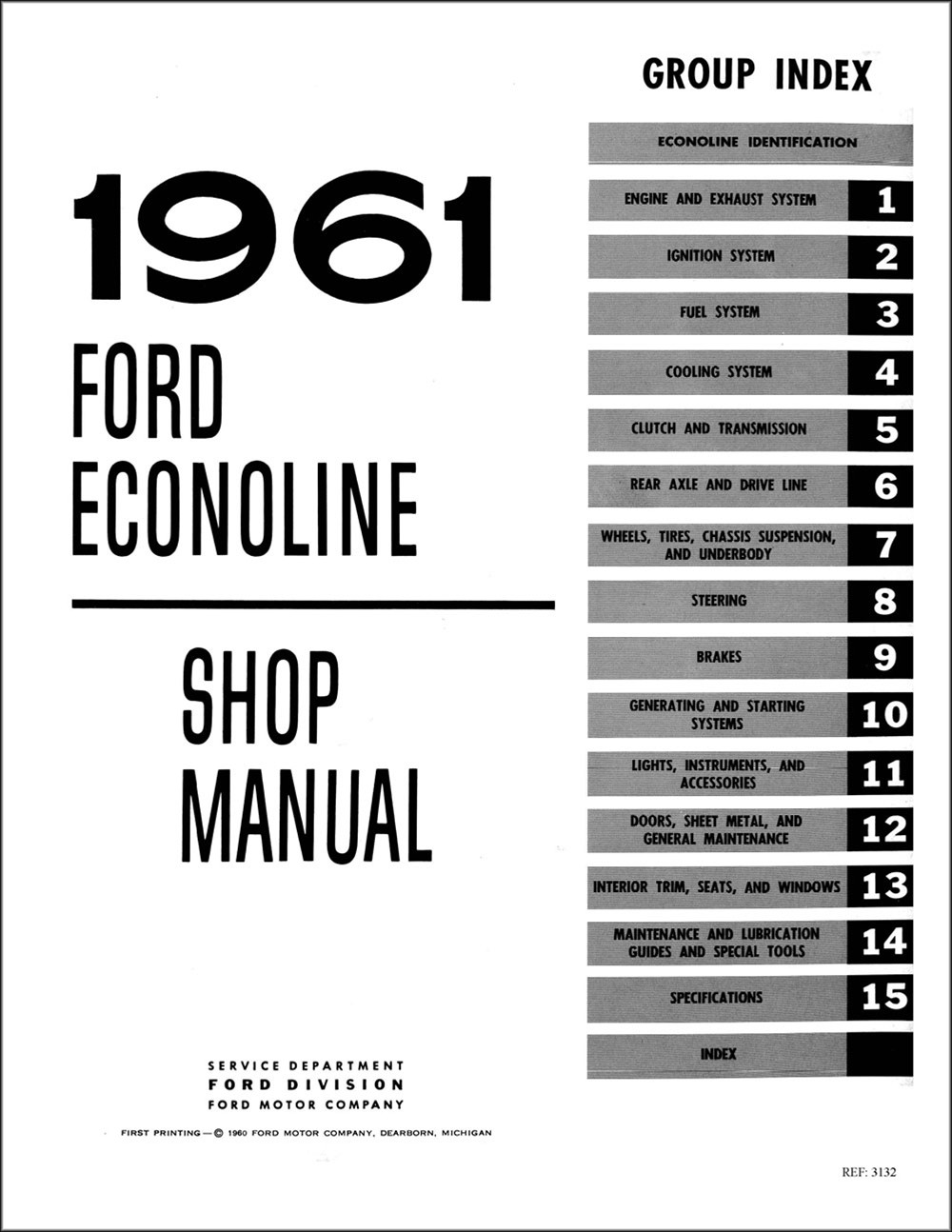 This book contains complete service information for all 1961-1963 Ford Econolines. It is a quality, licensed reprint of the manual printed by Ford for use by mechanics at the dealer. This combined volume includes what was originally two factory manuals: the 222 page "1961 Ford Econoline Shop Manual and the 50 page "1962-63 Ford Econoline and Falcon Club Wagon Shop Manual Supplement."