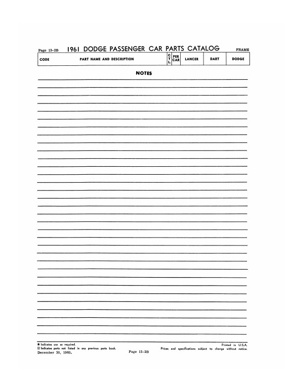 "1961 Dodge Parts Passenger Car Parts Catalog"