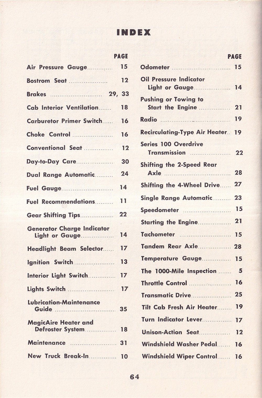 This is an original manual that was issued with 1961 Ford trucks. You will find instructions for operation of the instruments & controls, brakes, choke control, Cruise-O-Matic, Fordomatic, ignition, MagicAire system, overdrive, radio, tandem rear axle, throttle control, Transmatic drive, and ventilating air controls. Also includes specification charts for wheel nut torque, front wheel alignment, engines, tubeless tires, fuel tank capacities, transmission refill capacities, engine crankcase refill capacities, engine cooling system refill capacities, rear axle lubricant capacities, and load capacities. Buy now for the best manual for your Ford.