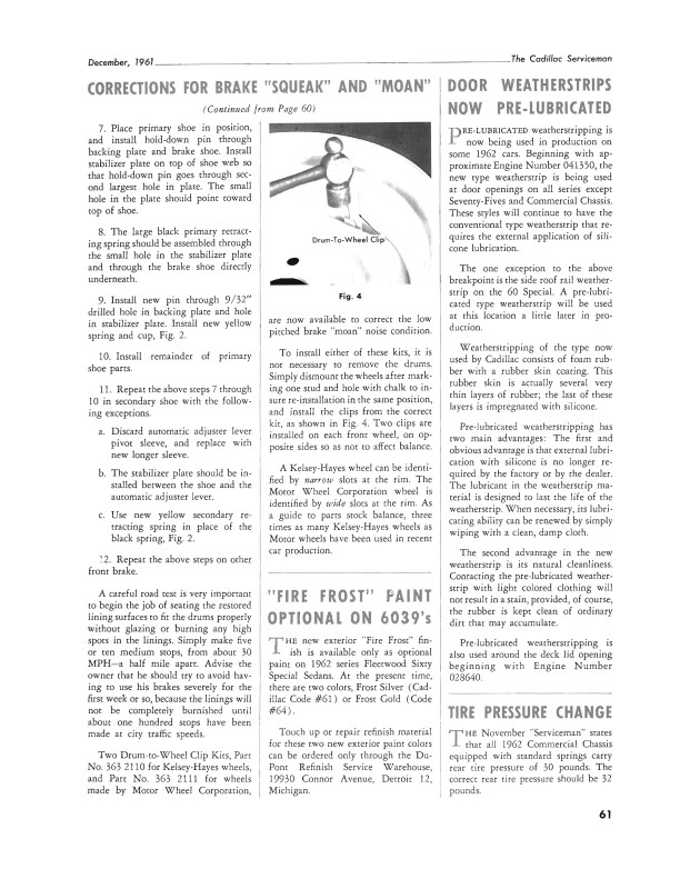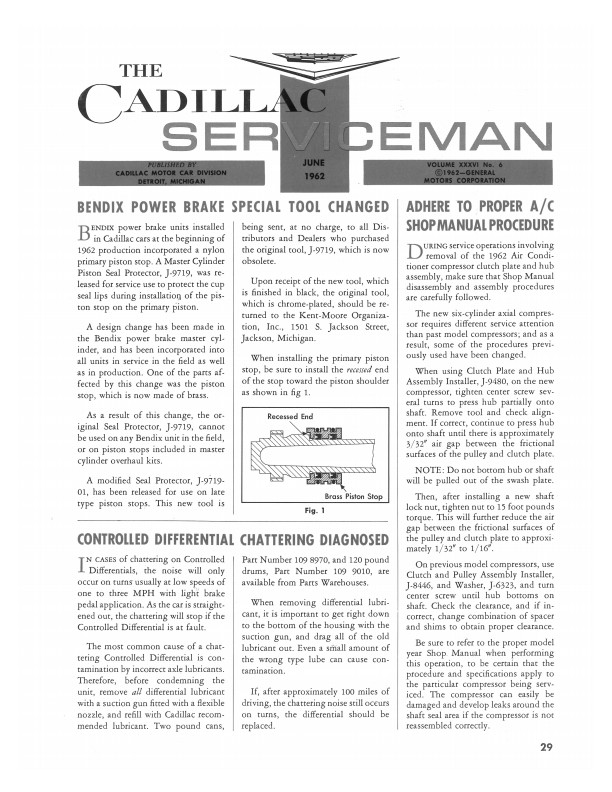 - shop manual revisions and corrections: cruise control wiring, front suspension upper control arm bushing removal, steering gear adjuster plug, Bendix power brake piston cups, Guide-Matic wiring