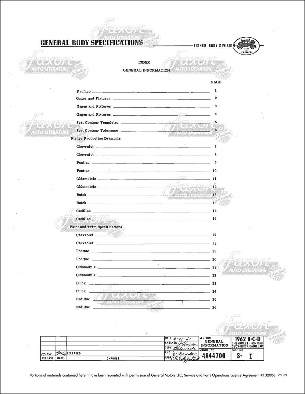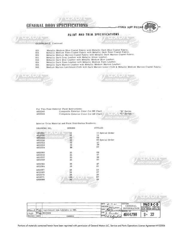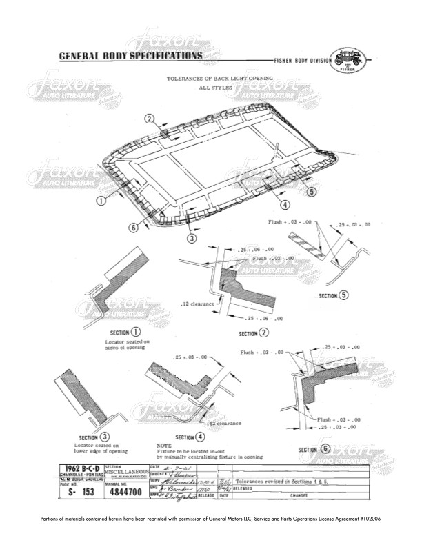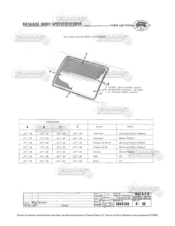 This assembly manual was written by GM engineers for use in the Fisher Body assembly plant. It gives you specifications for clearances, operating effort, leak testing, and torque.