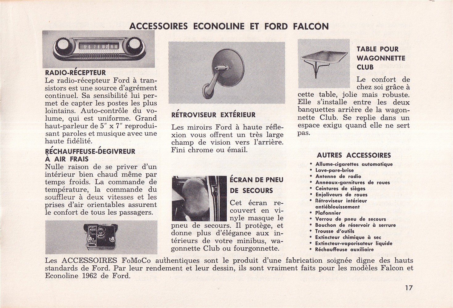 Minibus Falcon et Camionnettes Econoline Manuel 1962 Du Proprietaire