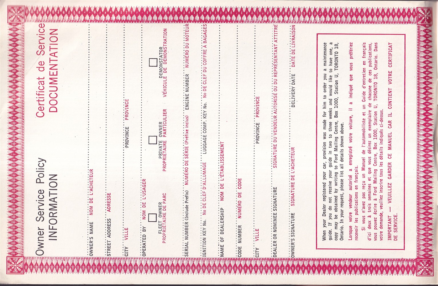 1962 Ford Galaxie Registered Owner's Manual and Owner Service Policy