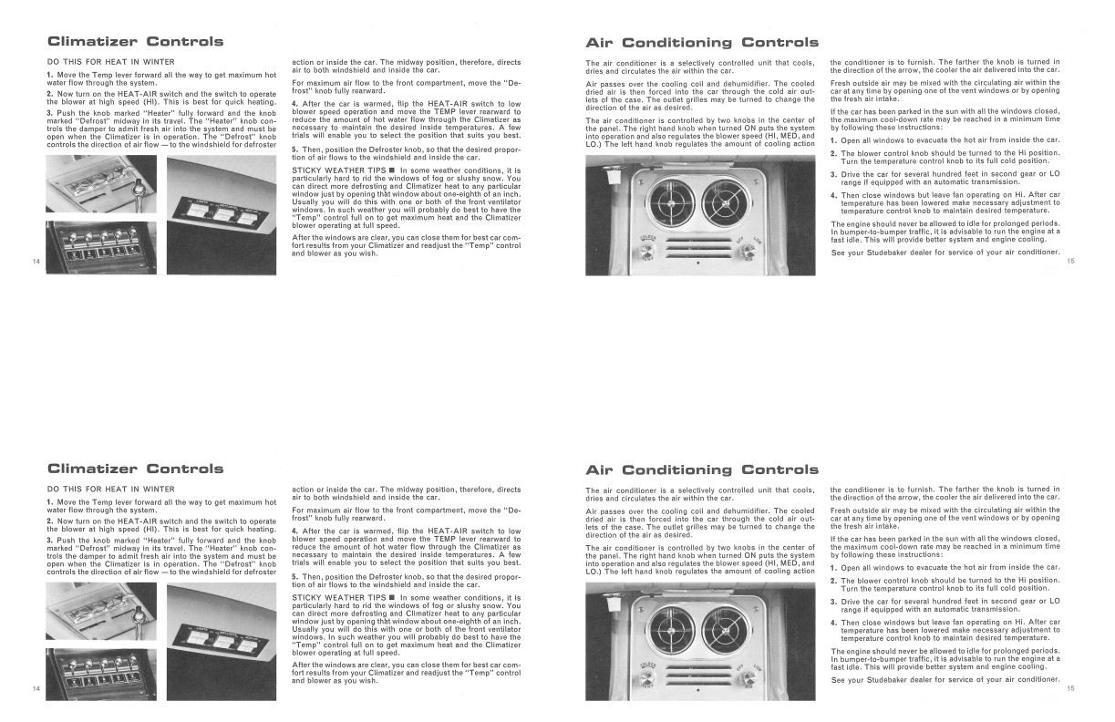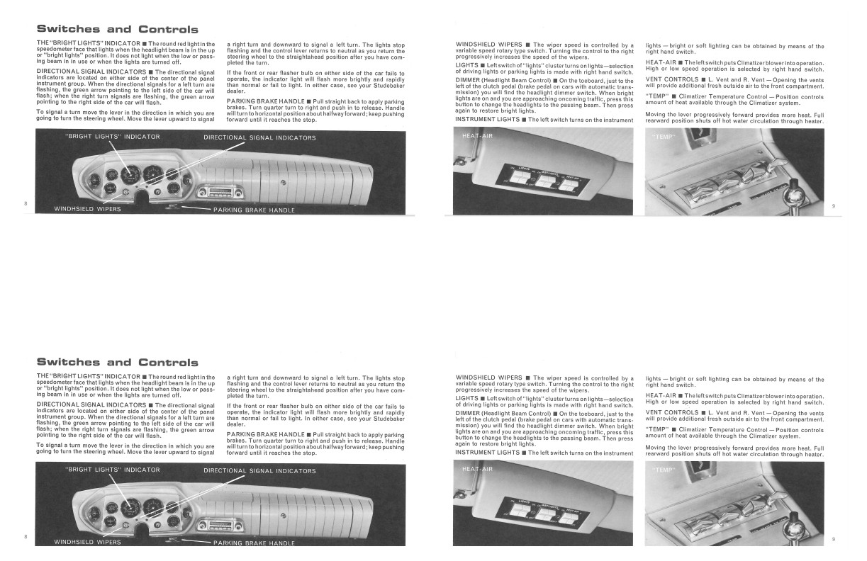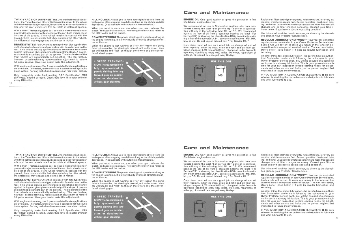 This is a reprint of the manual that came with your Studebaker. You will find operating instructions for the instruments and gauges, starting, a/c. climatizer controls, and transmission. The book includes a couple of pages of specifications. You'll see instructions for checking the car for wear and recommended maintenance. Buy now to own the best manual for your car.