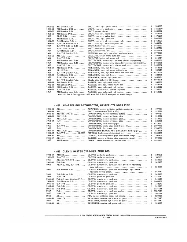 You will find original parts numbers, which are still useful today because most parts vendors still use those numbers to keep track of their own stock. You can also use this parts book to find out which parts on your vehicle interchange with other years and models covered in this book. Parts books are the authority on the correct equipment for your vehicle; you'll know definitively which parts and accessories are original when you use this book.