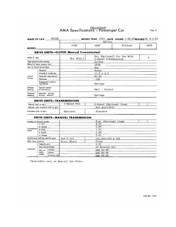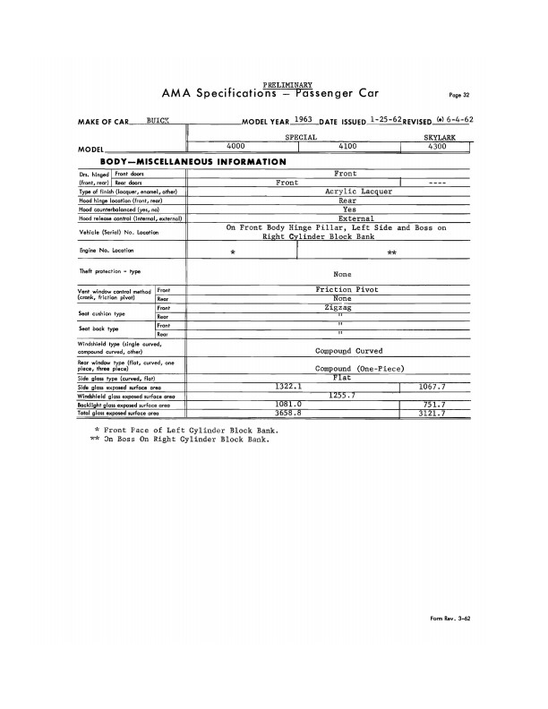 This is a reprint of the confidential manual written by Buick Engineering staff to explain the features of the new models. "Confidential" means that it was intended for employees only and not for customers or the public - this book was used inside Buick's Engineering Department. You will find detailed interior/exterior specifications. You'll see sections of 33 pages each detailing the AMA specs for each model, followed by 7-12 pages highlighting mechanical innovations for each model - usually with illustrations. See detailed specifications for body dimensions, power teams, engines, cooling systems, electrical, brakes, steering, and suspension. Mostly text with some drawings and a few photos. Some of the information in this manual can't be found anywhere else. Buy now for this hard to find book.