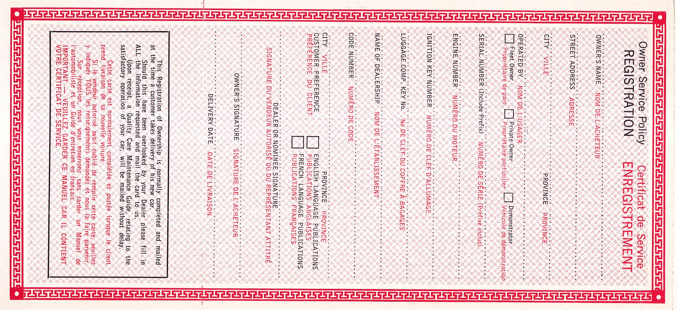 1963 Ford Fairlane Registered Owner's Manual and Owner Service Policy