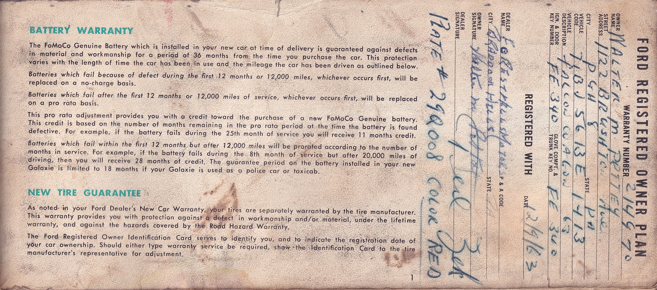 This is an original manual that was issued with 1963 Ford Galaxies and Customs. You will find step-by-step instructions for operation and service of controls and instruments such as the air-flow damper controls, battery, brakes, choke, convertible top, cooling system, locks, Fordomatic, fuses, heater, ignition switch, and a maintenance guide. The book has 64 pages of illustrations and step-by-step procedures. Buy now for the best manual for your Ford.
