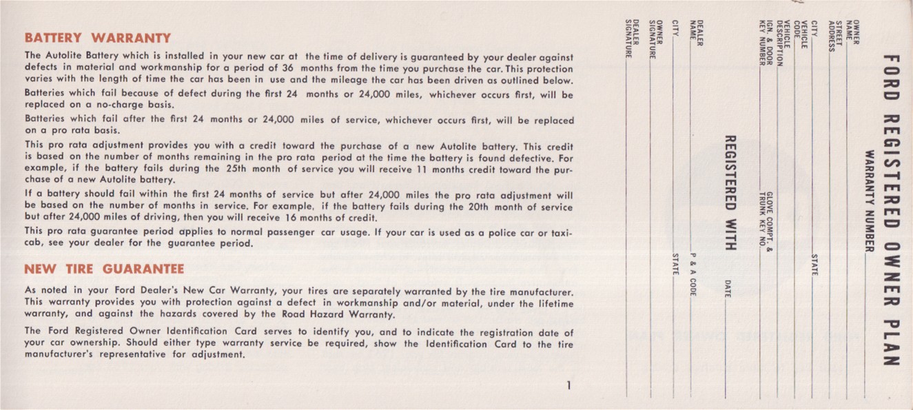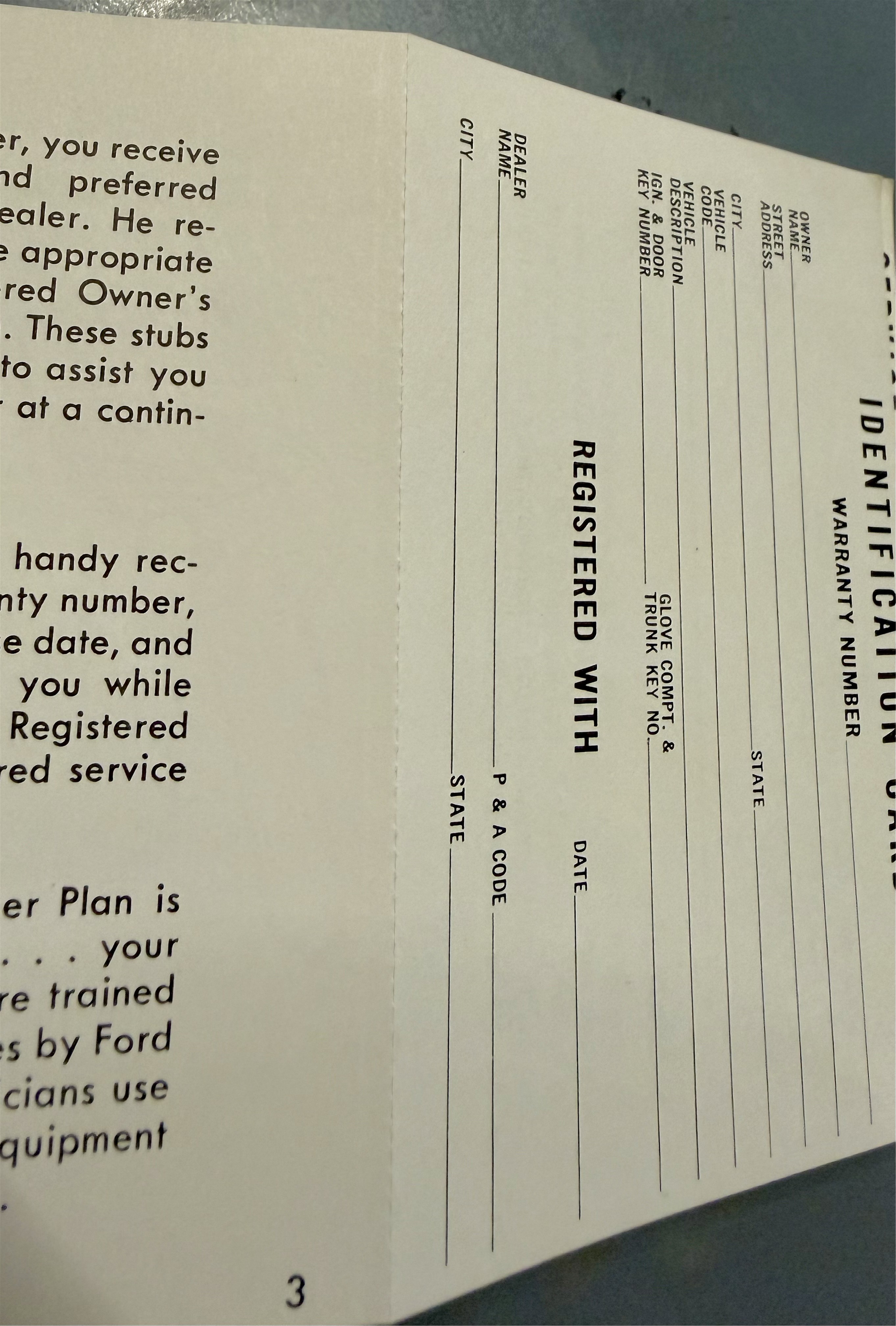 This book was printed decades ago by Ford, but I still have some New Old Stock ones that are unused. These are genuine Ford publications. The owner plan in front and service coupons at the back are perforated (most reprints do not have perforations).