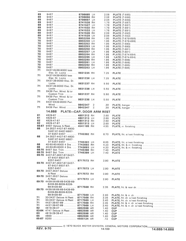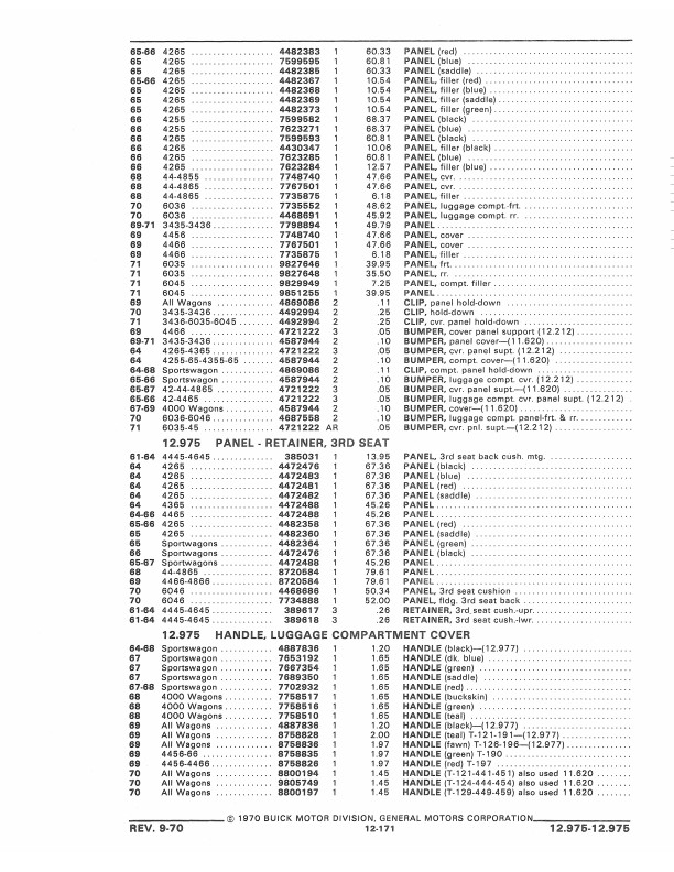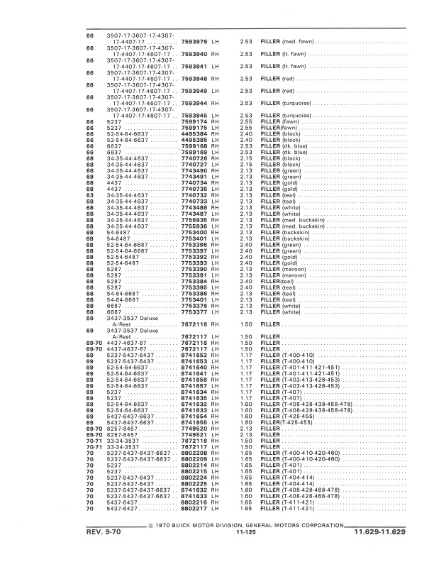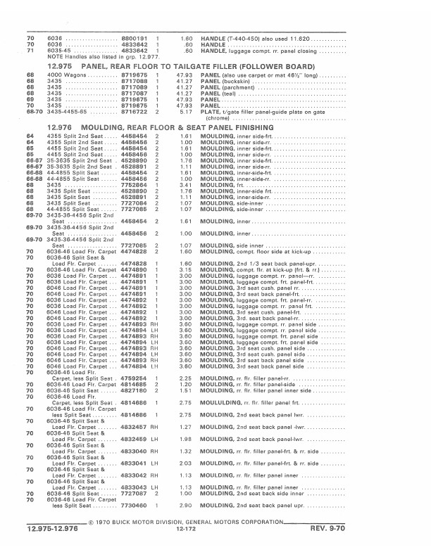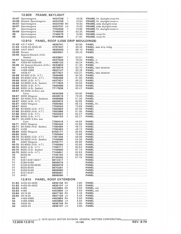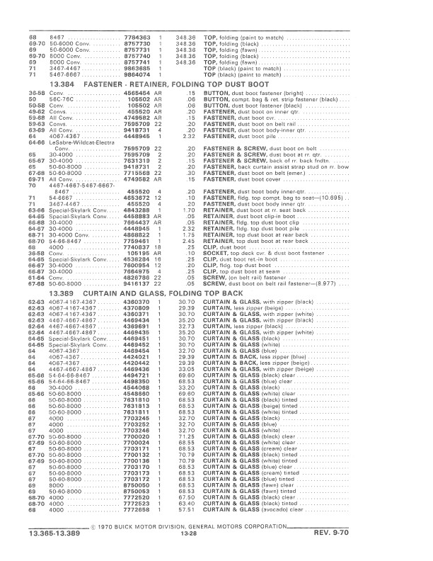 This book includes body and interior parts from the firewall back; a separate mechanical parts book covers the front fenders, grill, and dash. This is the book that dealership parts & service departments used to order parts. The illustrations in the book will help you to identify parts, and the exploded views can aid you with the assembly or disassembly of some parts of the vehicle. The text is a list of the parts available at the time of publication with data such as part numbers, model-year application and/or component application, part names, and more.