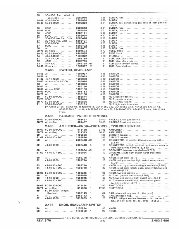 You will find original parts numbers, which are still useful today because most parts vendors still use those numbers to keep track of their own stock. You can also use this parts book to find out which parts on your vehicle interchange with other years and models covered in this book. Parts books are the authority on the correct equipment for your vehicle; you'll know definitively which parts and accessories are original when you use this book.