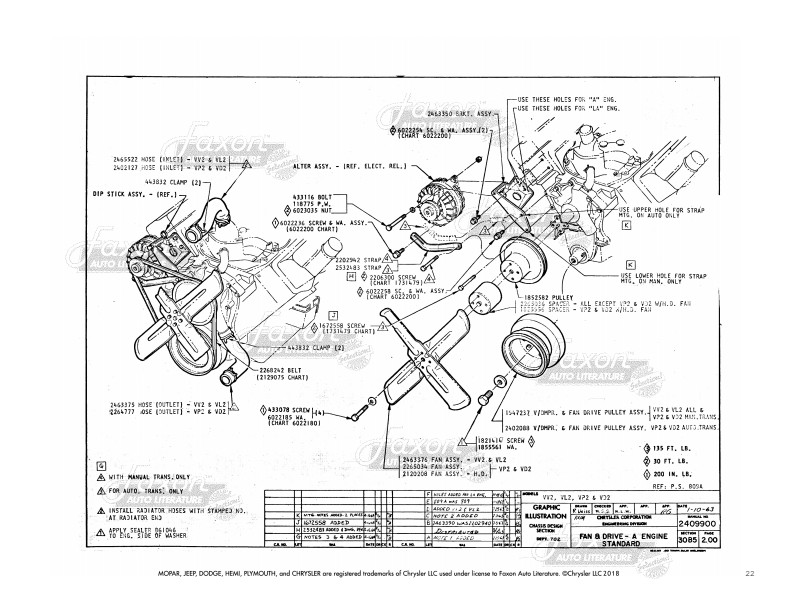 This manual gives you assembly illustrations for attaching parts to your engine, including hoses, belts, lines, linkages, and mounts. It does NOT show internal engine parts (pistons, for example). You will find illustrations for assembly of carburetor (shows carburetor installation, but not internal carburetor parts), fuel lines, vacuum lines, throttle linkage (including adjustment instructions), oil folterfan and drive, engine mounts/supports, and starter. The book shows exploded views of these parts and includes original part numbers.