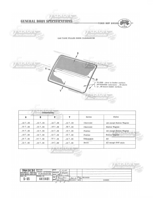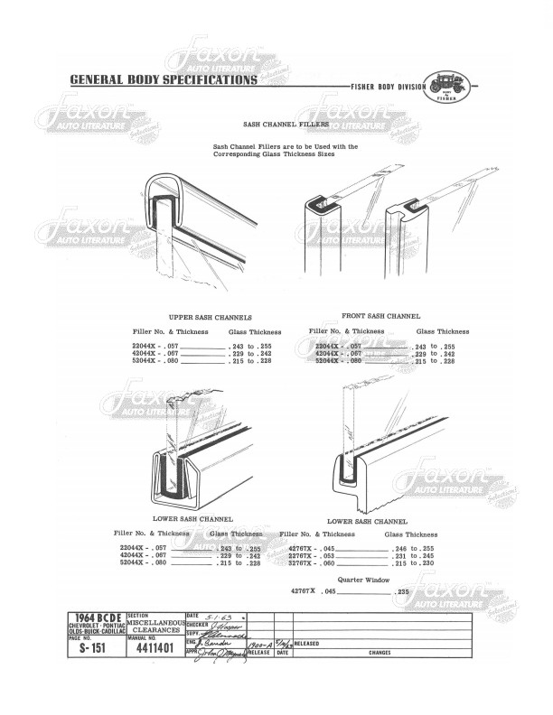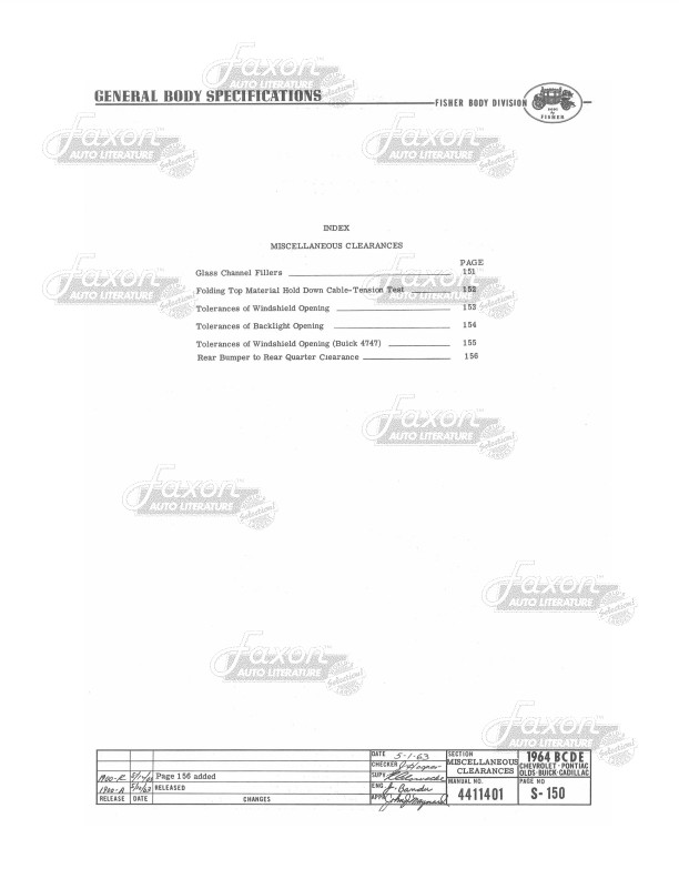 This assembly manual was written by GM engineers for use in the Fisher Body assembly plant. It gives you specifications for clearances, operating effort, leak testing, and torque.