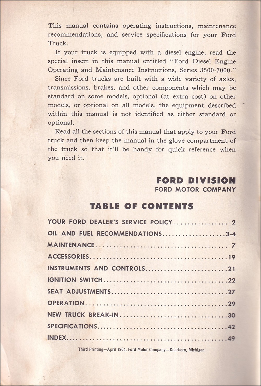 Ford Truck Operator's Manual Series 100 through 350 and P-Series