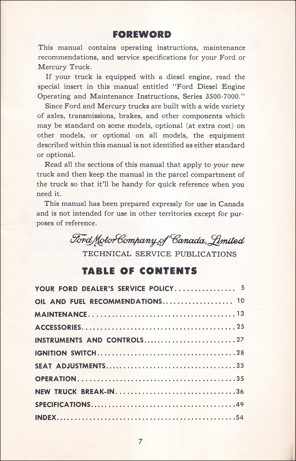 This is an original manual, found with Ford or Mercury trucks in Canada. This manual is in the English language.