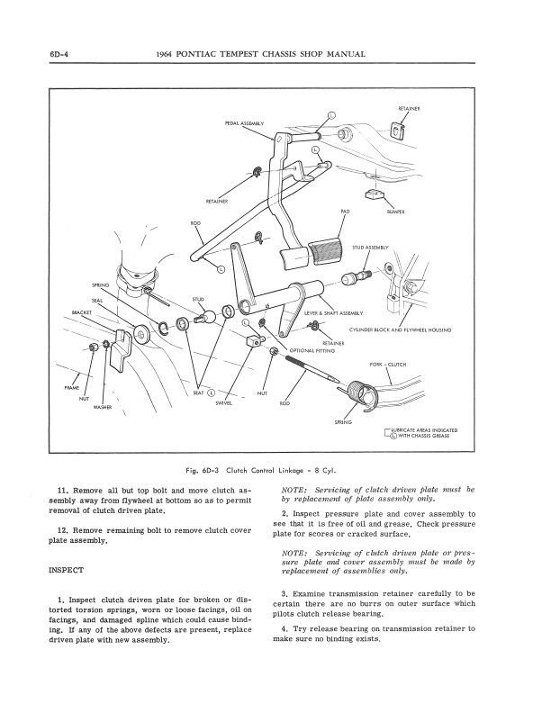 (3) The 1964 Tempest Shop Manual, which covers most of the mechanical repairs to the car other than the engine. In that part, you will find detailed service procedures for frame & body mountings, lubrication, suspension, chassis sheet metal, front end, rear end, headlining wheels & tires, rear axle, propeller shaft, brakes (standard, heavy duty, & power), cooling, fuel, engine tune-up, clutch, syncro-mesh transmission (standard & heavy-duty 3-speed, & 4-speed), Roto and Super Hydra-Matic, fuel tank & exhaust, standard & power steering, electrical, instruments, and accessories.