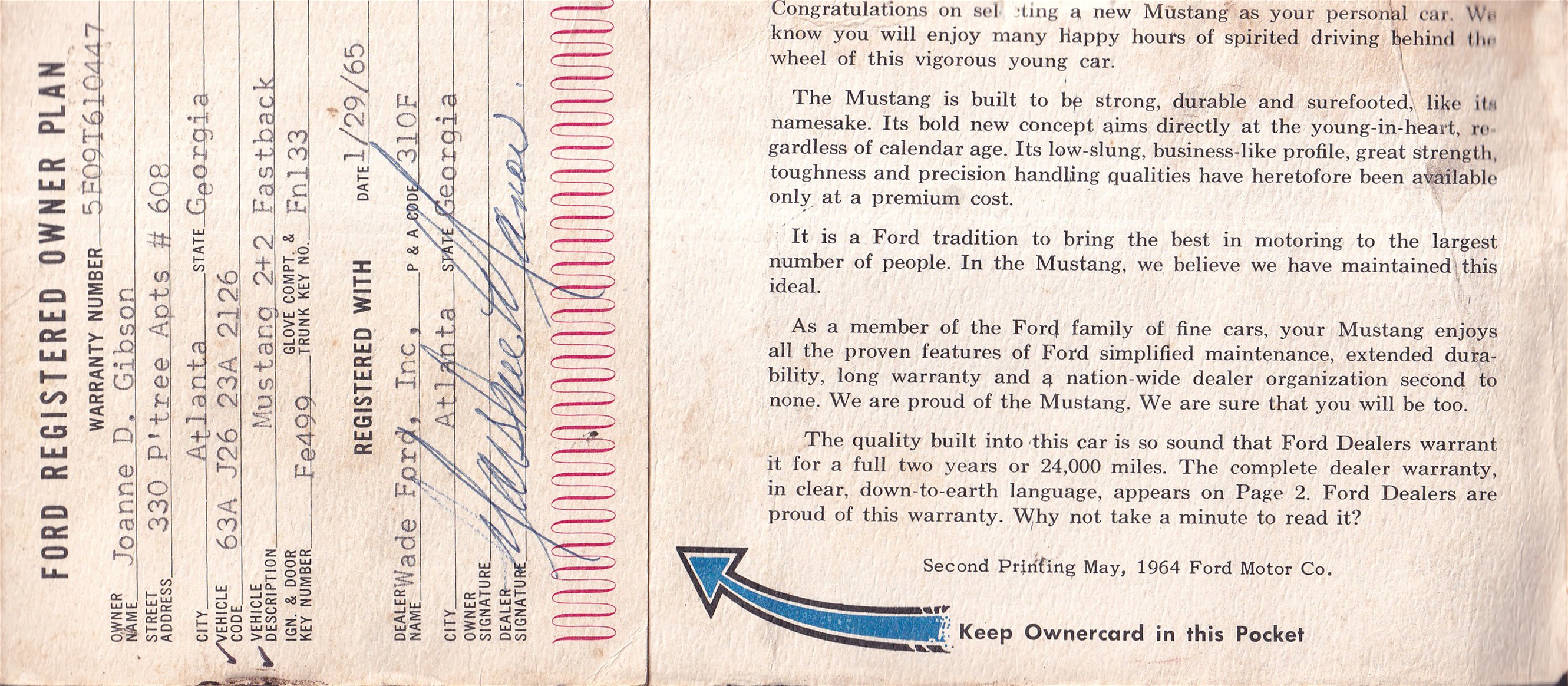 Mustang 1964.5 Registered Owner's Manual