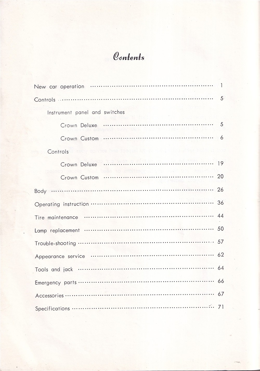 Toyota Crown Deluxe Crown Custom Owner's Manual Toyota Motor