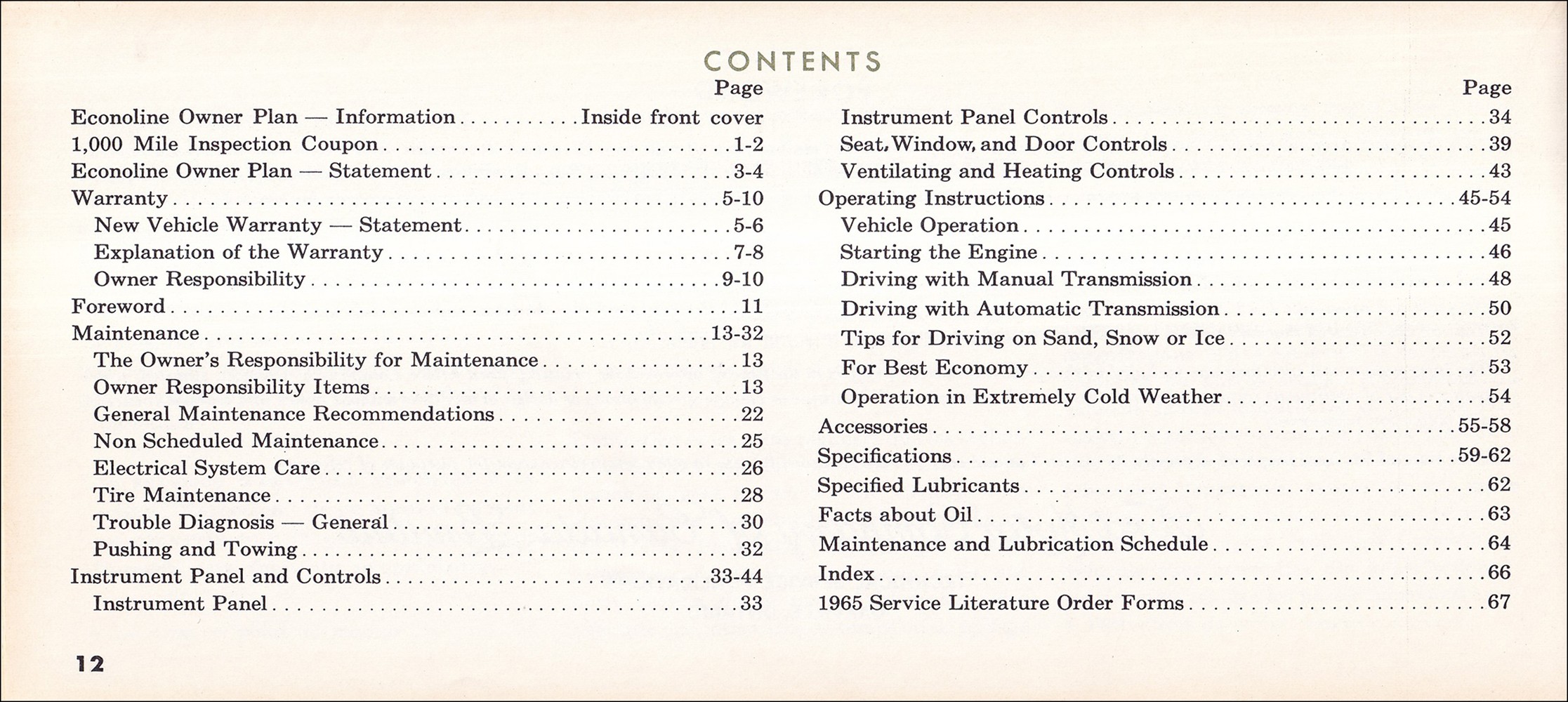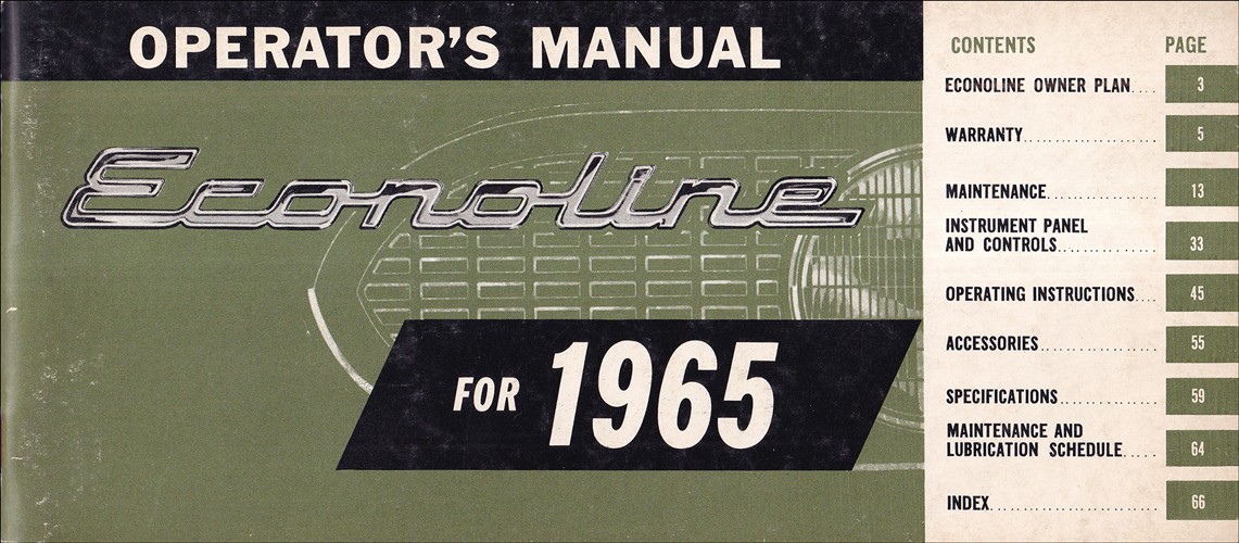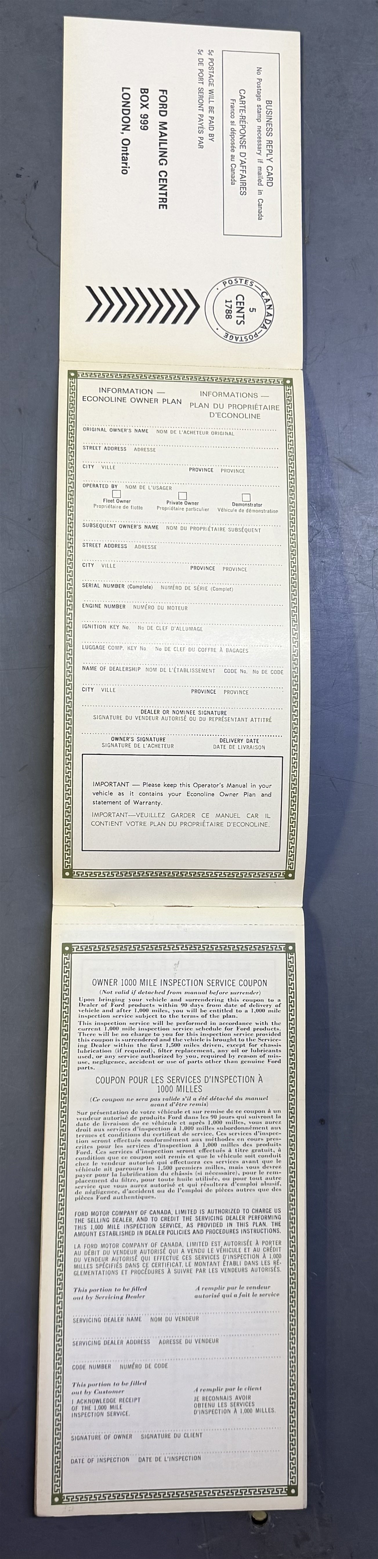 This original book was provided with the 1965 Econoline in Canada. This book is in the English language. The ones I have are excellent, never used, with blank owner info inside.