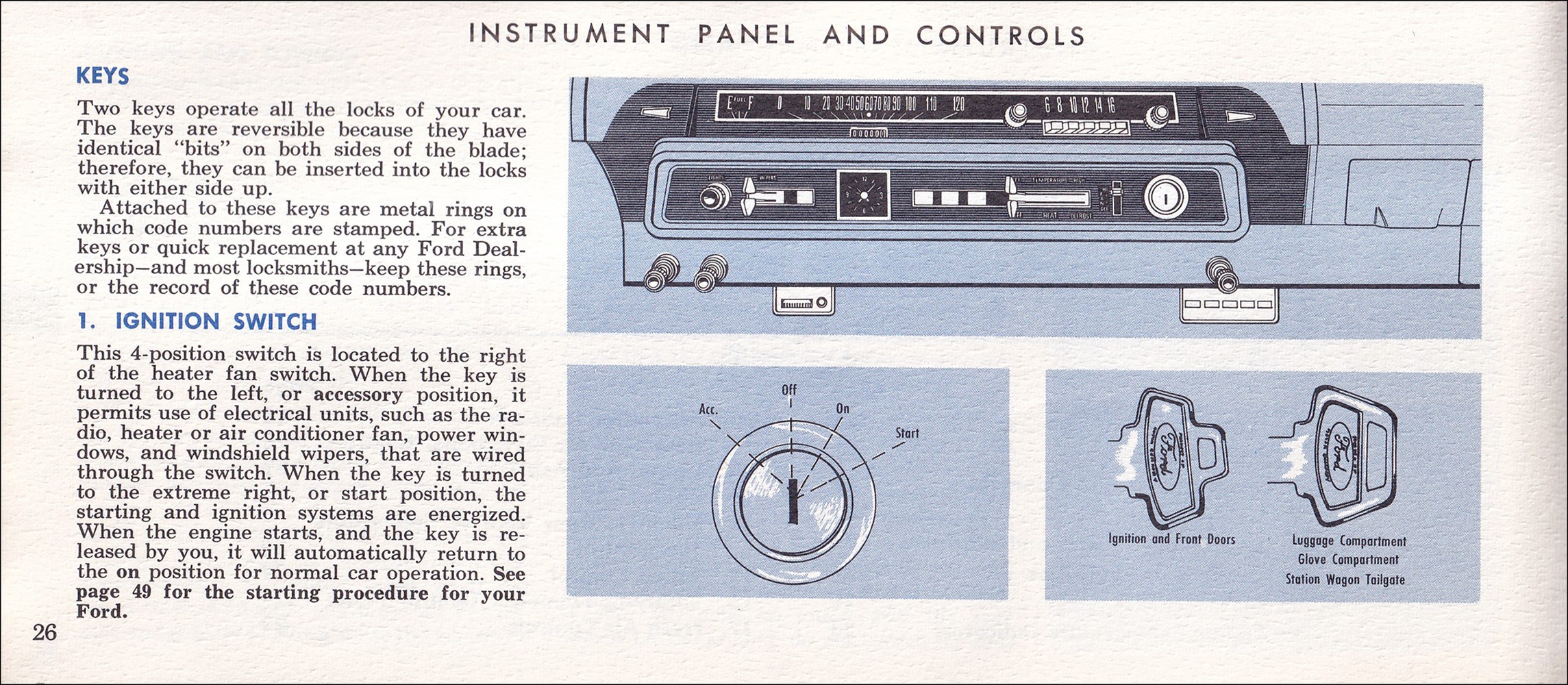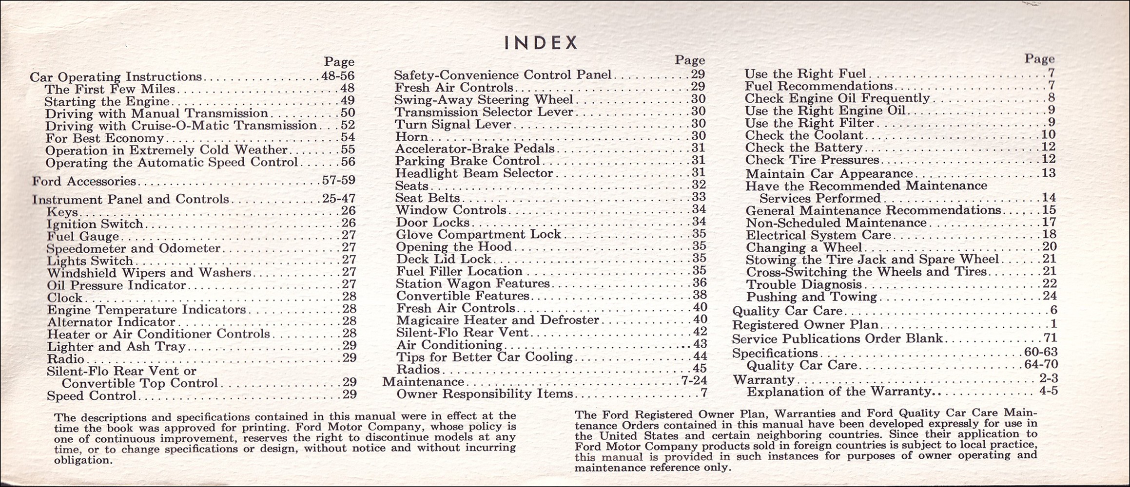 This is an original owner's manual that would have come with your 1965 Ford. It's an original book printed decades ago by Ford. You will find instructions on starting & operating, safety, towing, cold weather operation, and maintenance. You will also find specifications, tables for scheduled factory maintenance, instrument panel & controls, and details on accessories. Buy now to own the best manual for your Ford.