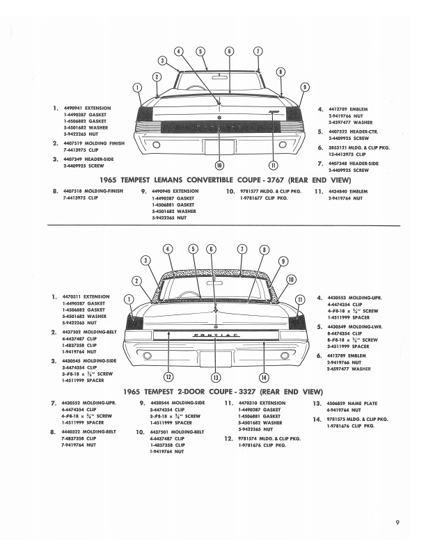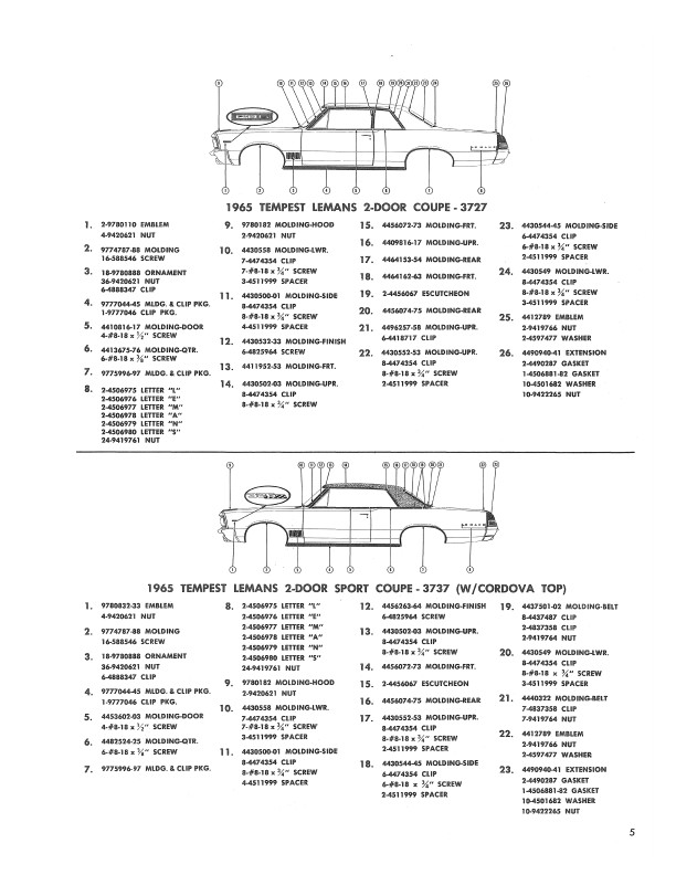 If you are restoring a Pontiac, this is the book that will help you put the finishing touches on your car. This manual holds the key to that cherry look - right down to the last detail. You will find pictures plus original Pontiac part numbers and descriptions for exterior chrome trim like ornaments, emblems, and letters. You'll also see part numbers and descriptions (but not pictures) for the clips, nuts & screws that you will need to attach them. Buy now because its not a Pontiac until it says it's a Pontiac..