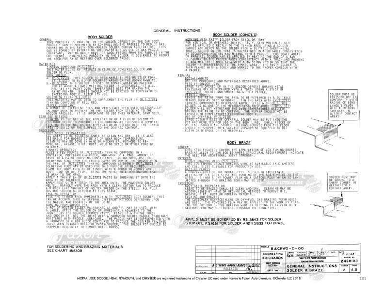 - Sealer, Solder, & Braze: Apply solder, tapes, and liquid sealants to fenders, dash, cowl, pillars, underbody, roof rails, quarter panels, glass channels, doors, and trunk.