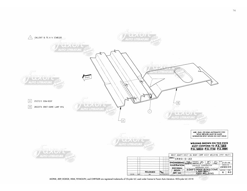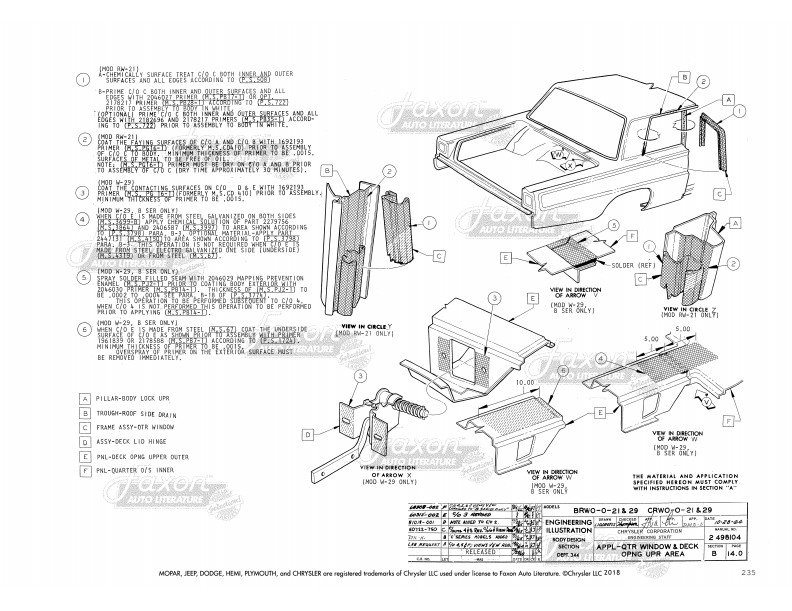 - Paint: Illustrates areas that are to be painted with each type of paint, including inside the engine compartment. It defines which areas are to be painted with interior vs. exterior colors. Find out the exact color placement for two-tones. You’ll also see diagrams for the application of stripes with measurements for placement.