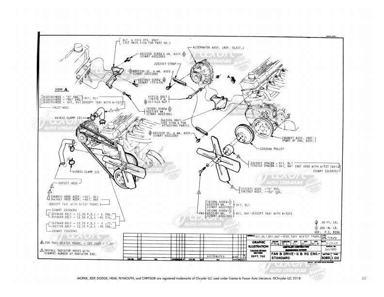 This manual gives you assembly illustrations for attaching parts to your engine, including hoses, belts, lines, linkages, and mounts. It does NOT show internal engine parts (pistons, for example). You will find illustrations for assembly of carburetor (shows carburetor installation, but not internal carburetor parts), fuel lines, vacuum lines, throttle linkage (including adjustment instructions), fan and drive, engine mounts/supports, and starter. The book shows exploded views of these parts and includes original part numbers.