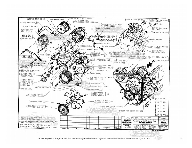 This manual gives you assembly illustrations for attaching parts to your engine, including hoses, belts, lines, linkages, and mounts. It does NOT show internal engine parts (pistons, for example). You will find illustrations for assembly of carburetor (shows carburetor installation, but not internal carburetor parts), fuel lines, vacuum lines, throttle linkage (including adjustment instructions), fan and drive, engine mounts/supports, and starter. The book shows exploded views of these parts and includes original part numbers.